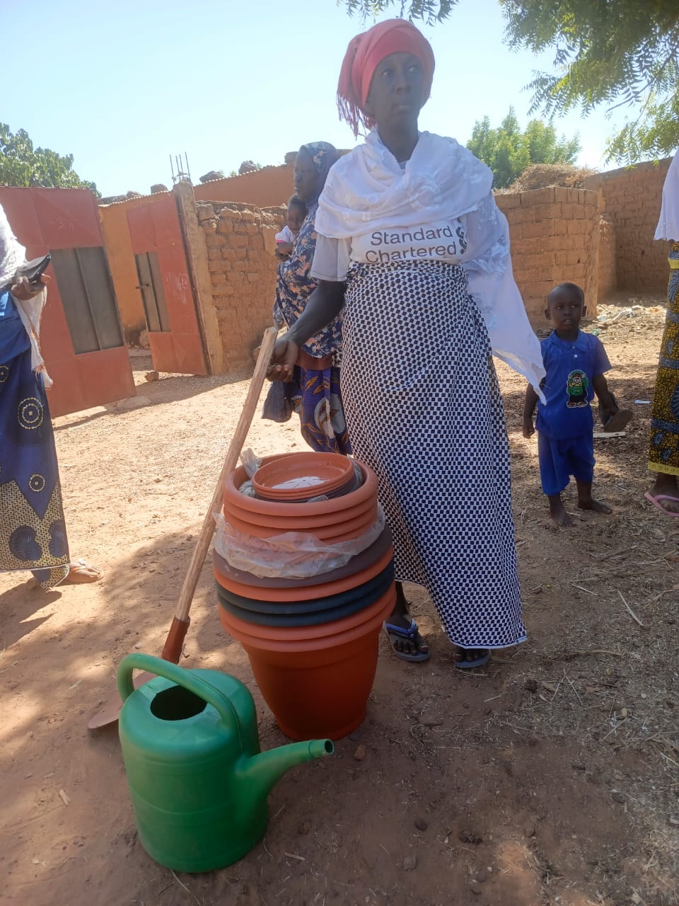L'opération de distribution des kits hors sol au sein des ménages a débuté le 15/12/2024 avec la grappe de Gourga. 45 ménages issus des grappes de Gourga, Tougouzague et Somiaga, ont été identifiés et formés sur la technique de production hors sol avant de rentrer en possession de leur kit pour se lancer dans la production. Le kit est composé de 20 pots hors sol, d'un rouleau de grillage, d'une pelle, d'un arbre fruitier, d'un arrosoir, des semences de tomate de deux variétés et des semences d'oignon. Cette activité rentre dans le cadre de la mise en œuvre des activités du projet BMZ NEXUS mis en œuvre Par ACD en partenariat avec le PAM.